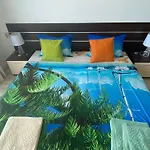 У цьому помешканні є повністю обладнана кухня для самостійного приготування їжі. Серед зручностей для самостійного приготування їжі - мініхолодильник. Пропонуючи широкий вибір страв, Oasis VIP Club Restaurant і Bar Kiko Beach знаходяться в 16 хвилинах пішки. Автобусна зупинка DSK Bank розміщена за на близькій відстані від апартаментів. До послуг гостей аквапарк і сад, а також тераса з видом на сад. Гості можуть зайнятися віндсерфінгом, дайвінгом і веслуванням на каное щоб досягнути своєї фітнес-цілі.